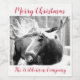 Lush photograph of a moose in winter snow winter scene Christmas holiday wine label. Personalise with you family name or company or organisation name. Modern with trendy script typeface.