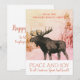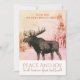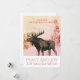 Moose in snowy winter landscape business Christmas holiday card for a nature and wildlife non profit organisation or wildlife rescue group. The glowing pinkish duotone tint creates a a morning sunrise effect and makes this card pop. For employees, patrons and volunteers.
