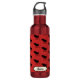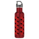 Quench your thirst with this personalizable water bottle. A rustic pattern, this design features a red background with black moose. At the bottom is a label outlined in black with your name written in the middle. Purchase yours today!