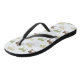 Cute random pattern Moose flip flops in earth tones with a white background.