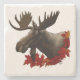 Moose Red Maple Leaves Stone Coaster