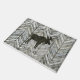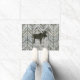 "Moose Rustic Lodge Mountain Welcome Cabin Name Doormat." "Welcome to our Cabin" with your family name personalized is an ideal hostess gift if you are visiting a friend's cabin or wish to customize your own. Created from acrylic paints on canvas by internationally renowned artist and designer, Audrey Jeanne Roberts. A moose silhouette in dark ebony brown black is the central design with a background of wooden birch bark designed in a herringbone pattern. Copyright.