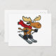 Moose skier cartoon | choose background colour postcard
