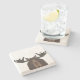 The coasters are gorgeous, a quality feel and heavy weight. They look like a precious archeological find. A rustic stone juxtaposed with a modern floral black and white print. I like the way the print goes slightly imperfect on the cut stone edges giving them a kind-of natural beauty.