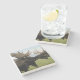The coasters are gorgeous, a quality feel and heavy weight. They look like a precious archeological find. A rustic stone juxtaposed with a modern floral black and white print. I like the way the print goes slightly imperfect on the cut stone edges giving them a kind-of natural beauty.