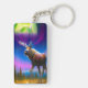 Moose Under Colourful Aurora Borealis Sky Key Ring