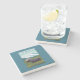The coasters are gorgeous, a quality feel and heavy weight. They look like a precious archeological find. A rustic stone juxtaposed with a modern floral black and white print. I like the way the print goes slightly imperfect on the cut stone edges giving them a kind-of natural beauty.