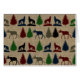 Wild Moose Wolf Wilderness Mountain Cabin Rustic Decor with a repeating pattern of moose, wolves howling, and pine trees in multiple colours of navy blue, maroon red, tan, and hunter green. The background is a printed burlap design, giving it a textured look.