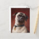 Carl Reichert’s Mops is a captivating portrait of a curious-looking pug set against a moody burgundy background. The painting highlights the pug’s expressive face and wrinkled features, rendered with exquisite detail and lifelike texture. The rich tones of the background create a dramatic contrast, emphasizing the playful yet dignified charm of this beloved breed. Reichert’s skilful artistry brings out the personality and endearing nature of the pug in this timeless depiction.