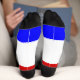 My partner loved it! It fits well and doesn’t come off after washing it. We love it! It’s great. When he wears it stretches a bit but you can still see the pics! It’s thin so don’t expect thick socks. Great though!