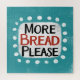 "More Bread Please" is a fun text design with a white accent shape surrounded by white whimsical textured dots.