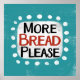 "More Bread Please" is a fun text design with a white accent shape surrounded by white whimsical textured dots.