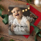 More cheer this year! Celebrate good news this holiday season with this two-photo Christmas birth announcement card. With one photo on the front and playful type, this vertical holiday card design also features room to introduce baby and share details like date and size. The back side is a festive red with playful dots and stars and also has a second photo and room for a longer message. It can also be left blank. This card works well as a holiday birth announcement, but the versatile text is also great for any happy occasion like a wedding, new pet or a Christmas pregnancy announcement. More colours and styles available and it can be purchased as a digital holiday card download.