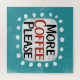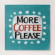 "More Coffee Please" is a fun text design with a white accent shape surrounded by white whimsical textured dots.