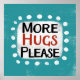 "More Hugs Please" is a fun text design with a white accent shape surrounded by white whimsical textured dots.