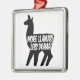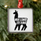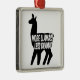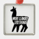 More llamas! Less drama! Black and white design. Comic style text inside a silhouette of a llama.