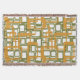 This throw blanket has a mid-century modern design of open rectangles in gold over open rectangles in green.