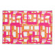 This pillowcase has a mid-century modern design of open rectangles in pink over open rectangles in orange.
