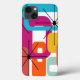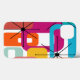This phone case has a mid-century modern design of retro rectangles and starbursts in bright retro colours.