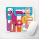 This mouse pad has a mid-century modern design of retro rectangles and starbursts in bright retro colours.