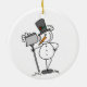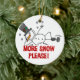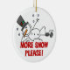 A snowman wearing a black top hat and red text that reads "More Snow Please!" is featured on the front, and a snowman with a shovel on the back of this cute snowman holiday keepsake ornament!