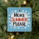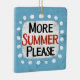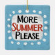 "More Summer Please" is a cute text design in blue with black and red text, along with a white accent shape and white textured whimsical dots surrounding it.