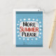 "More Summer Please" is a cute text design in blue with black and red text, along with a white accent shape and white textured whimsical dots surrounding it.