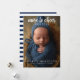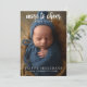 What better way to bring joy to your friends and family than a picture of your newborn on your family Christmas card. This card features a place for you to add a photo and on the top, it says "more to cheer" in a calligraphy font. There is a place for you to add a message at the bottom. On the back of the card, there is a navy and white stripe pattern.