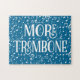 A fun and happy More Trombone design featuring a blue background with white text and musical notation.
