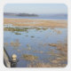On a day in early spring the tide is high on Morecambe Bay and the sparkling blue sea washes right up to the Prom at Grange-over-Sands in the Lake District. The blue of the sky and the water contrasts perfectly with the straw colored grass to create a wonderful coastal photo image.