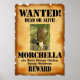 An old west style wanted poster for a morel mushroom. Morchella are highly prized mushrooms also known as hickory chickens and sponge mushrooms. These shirts and items make a funny gift for a mushroom hunter. Photo avalable at http://commons.wikimedia.org under the terms of the GNU Free Documentation License.