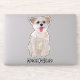 A sticker with a cute image of a Morkie dog. The image and text can be pesonalized. Original artwork by W.B.