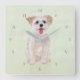 A wall clock with a cute Morkie dog portrait. The image and text can be customised. Original artwork by W.B.