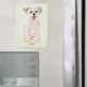 A magnet with a cute Morkie image. The image and text can be personalised. Original artwork by W.B.