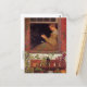 A fine art postcard with the painting, Morning Glories (1873), by the American artist Winslow Homer (1836-1910). A girl sitting in an open window, with plants in clay pots and morning glories climbing the window frame.
