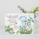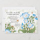 A charming invitation with a grunge background and sprigs of blue morning glory flowers. Busy bees are featured all around the flowers. Perfect for any summer-theme celebration.