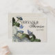 This vintage inspired wedding collection has a complete ensemble of products and can be created in several colorways. If you would like it to match your wedding let us know via email and we'll be happy to assist you. This design consists of a beautifully detailed original art swirl set in the background with a pair of blue butterflies flitting about a garden scene of morning glories, blue and white hydrangeas and a beautiful full blossomed white flower. All of these elements came from various antique original paintings. PAPER SELECTION RECOMMENDATIONS: In addition to the standard paper offered, this would be exquisite with the Pearl, Gold, Silver or any of the premium papers. YOU MIGHT ALSO ENJOY:
