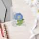 Beautiful scripture of hope overlay in translucent vellum features a morning glory flower and leaf with sunny yellow fancy calligraphy scripture reference "Joy comes in the morning".
