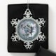 Morning Glory Shadow Fairy and Cosmic Cat Snowflake Pewter Christmas Ornament