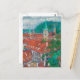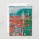 Postcard featuring colourful European cityscape, pastel painting in impressionist style. Spectacular view of old city, red tiled roofs and delicate mint green towers. Work was painted for Virtual plein-air art project on Facebook, original is available.