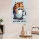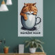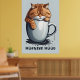 Morning Mood Cat Coffee, Funny Cat Digital Art Poster