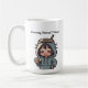 Sleepy kawaii chibi girl in oversized hoodie with coffee cup ears