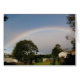 An early morning rainbow announcing the storms departure is draped over the suburban landscape.