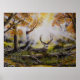 Print of Morning Rise Orignal Oil painting By David E Paul. Deer sitting in meadow with sun rays beaming through