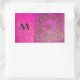 MORNING STAR Pink,Fuchsia Black, Monogram Rectangular Sticker