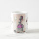 I have put a beautiful 18th century fashion plate of a well to do woman taking her little dog for a walk with urns, plinths, a scattering of iris’s, roses in full bloom and lavender on a pale pink and cream striped background.