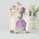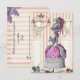 I have put a beautiful 18th century fashion plate of a well to do woman taking her little dog for a walk with urns, plinths, a scattering of iris’s, roses in full bloom and lavender on a pale pink and cream striped background © Wickedly Lovely