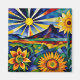 Colourful Morning Sunflowers With Sunburst and Mountains Artwork.
