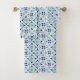 Moroccan blue tile pattern watercolor bath towel set
