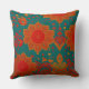 Moroccan fabric exotic red orange teal green O Cushion